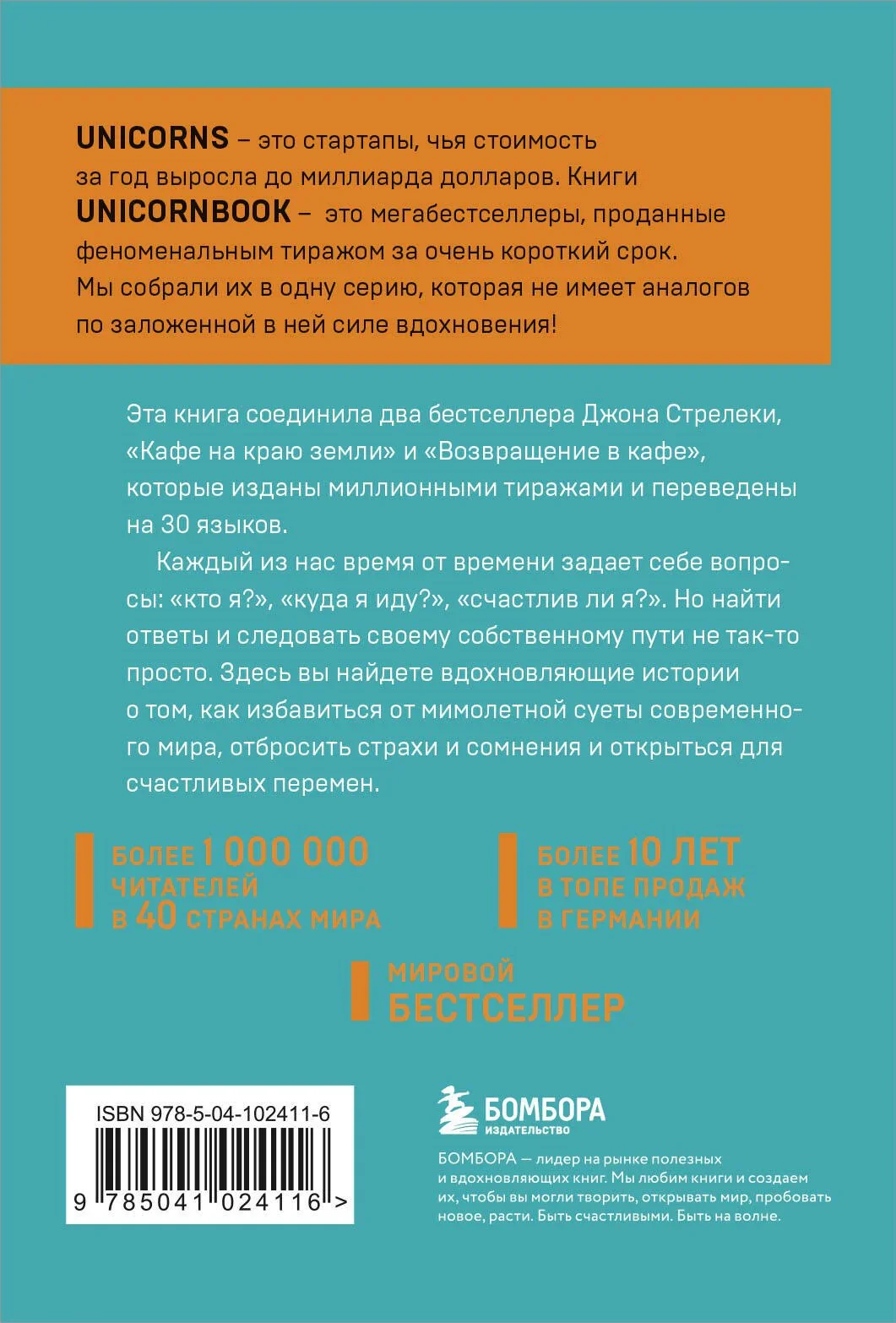 № 7 НЕМЕЦКОГО АМАЗОН! БОЛЕЕ 12 000 ВОСТОРЖЕННЫХ ОТЗЫВОВ! В РОССИИ ПРОДАНО БОЛЕЕ 200 000 ЭКЗЕМПЛЯРОВ! После долгого блуждания в темноте и неизвестности все, что вам нужно — зайти в уютное кафе, выбрать столик и раскрыть меню. Вместе с главным героем Джоном вы пройдете короткий, но полный удивительных открытий путь — путь к самому себе. Каждому из нас необходимо хоть раз остановиться посреди суеты и тревог современного мира и ответить на главный вопрос: «Почему я здесь?» Понять, что действительно значимо, увидеть цель своей жизни в дымке будущего и двигаться к ней, каждый день ощущая себя счастливым. Эта книга — мировой бестселлер, переведенный на 30 языков — вдохновит вас на перемены, о которых сегодня вы можете только мечтать. Об авторе Джон П. Стрелеки — талантливый писатель, спикер и коуч. В 2002 году, будучи еще бизнес-консультантом, Джон с женой отправился в 9-месячное путешествие по миру. Этот опыт вдохновил его на написание первого бестселлера — «Кафе на краю земли». После его ошеломительного успеха было издано еще несколько книг автора, многие из которых стали бестселлерами.