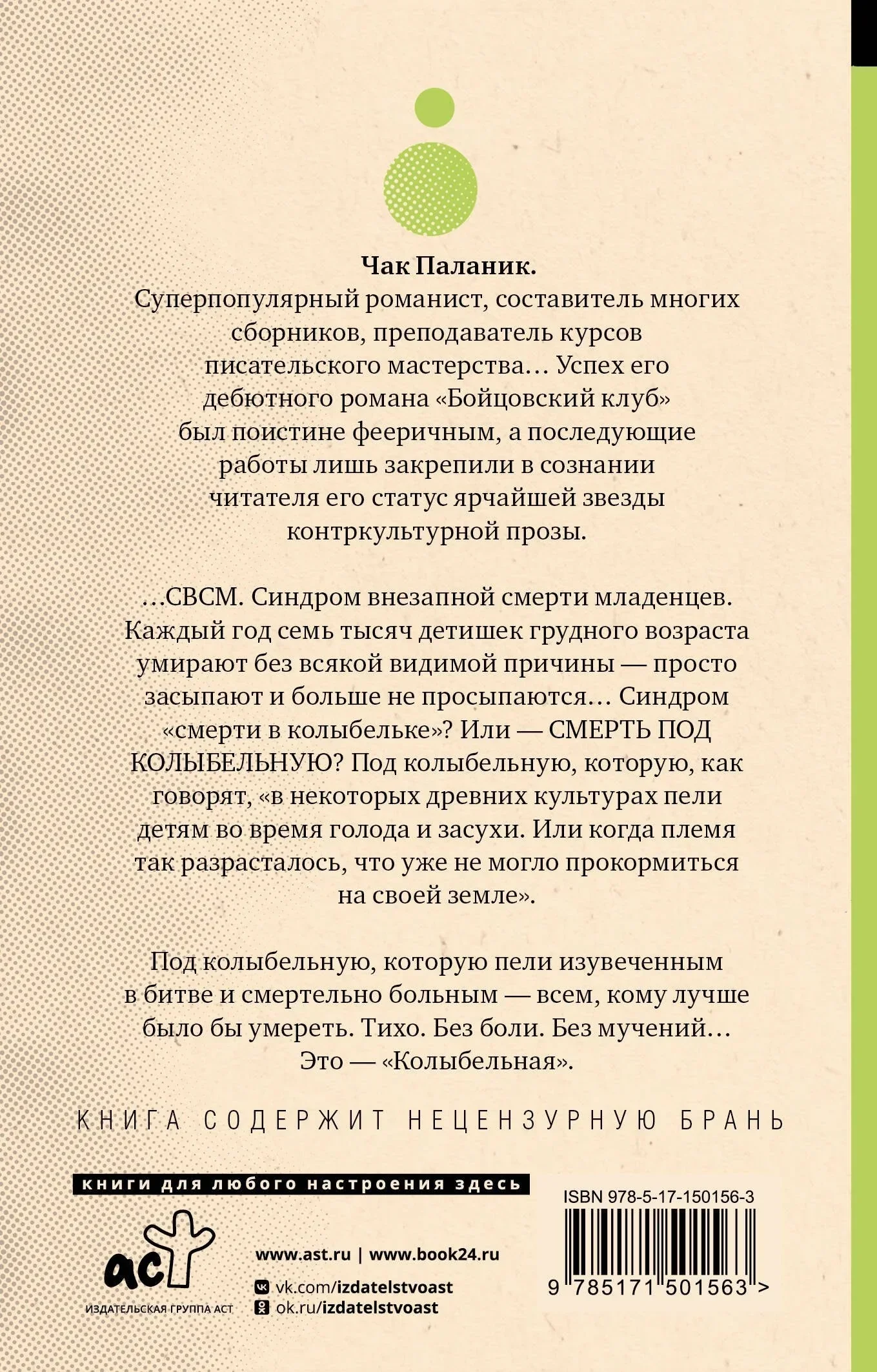 …СВСМ. Синдром внезапной смерти младенцев. Каждый год семь тысяч детишек грудного возраста умирают без всякой видимой причины — просто засыпают и больше не просыпаются… Синдром "смерти в колыбельке"? Или — СМЕРТЬ ПОД "КОЛЫБЕЛЬНУЮ"? Под колыбельную, которую, как говорят, "в некоторых древних культурах пели детям во время голода и засухи. Или когда племя так разрасталось, что уже не могло прокормиться на своей земле".Под колыбельную, которую пели изувеченным в битве и смертельно больным — всем, кому лучше было бы умереть. Тихо. Без боли. Без мучений…Это — "Колыбельная".