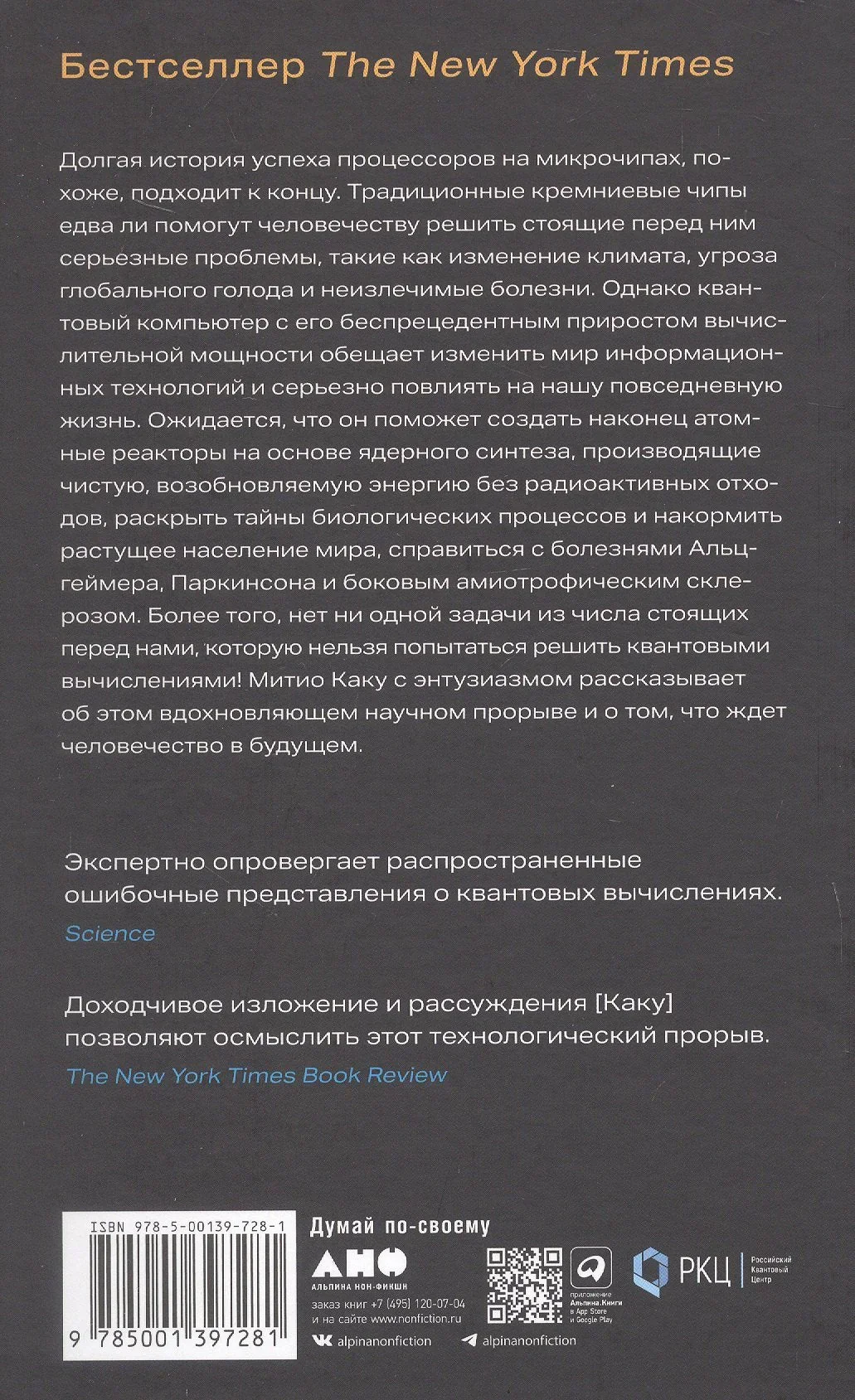 В книге «Квантовое превосходство» известный физик и непревзойденный популяризатор науки Митио Каку рассматривает феномен квантовых компьютеров, способных решать задачи, с которыми классические вычислительные системы до сих пор не в состоянии справиться. Развитие квантовых компьютеров может привести к революционным открытиям в криптографии, медицине, сфере искусственного интеллекта, космических исследованиях и многих других областях. Автор обращается к широкому кругу читателей и поэтому рассказывает о сложных процессах и научных достижениях просто и увлекательно. Книга дает возможность заглянуть в будущее и увидеть, какие инновации ожидают нас в ближайшие десятилетия и как они изменят нашу жизнь.