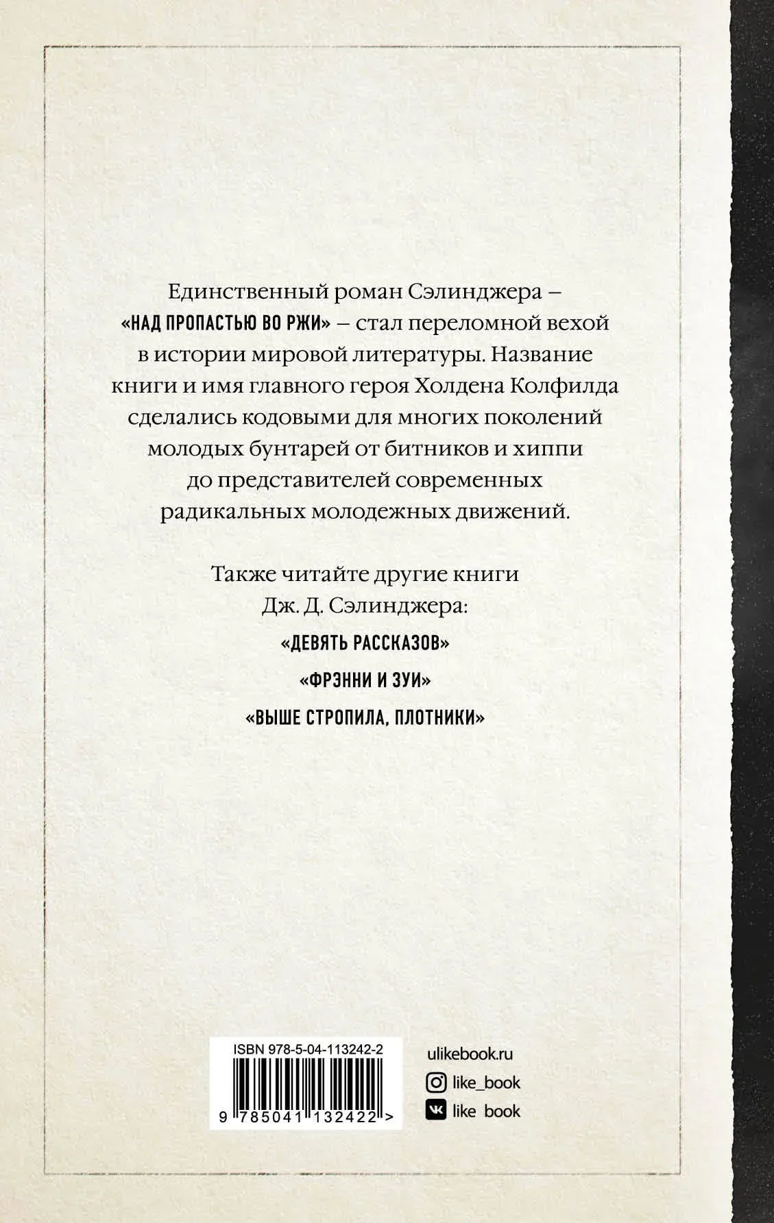 Эта великая книга Джерома Сэлинджера вышла больше 60-ти лет назад, в этом году в России выходит еще одно издание — в классическом переводе Риты Райт-Ковалевой и в новом современном оформлении. Одна из самых продаваемых книг в мире! Совокупный тираж «Над пропастью во ржи» уже давно перевалил за фантастические 70 000 000 экземпляров.