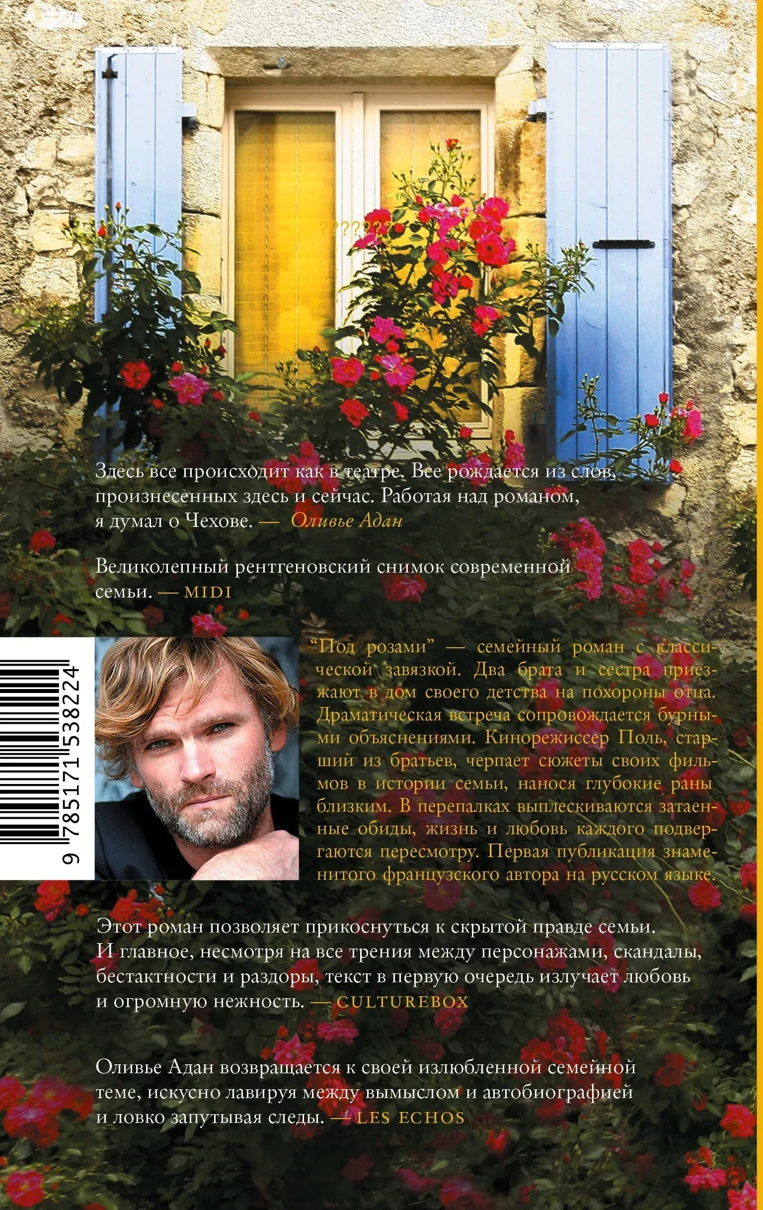 Преуспевающий топ-менеджер Антуан, медсестра Клер и успешный кинорежиссер Поль, порвавший отношения с родней много лет назад, съезжаются в дом своего детства на похороны отца. Три дня в родительском доме — три акта семейной драмы. Встреча сопровождается бурными объяснениями. Все трое по очереди ведут рассказ от первого лица, вспоминают — по?разному — общее прошлое, перекидываются цитатами и мемами из любимых фильмов и песен, ссорятся, мирятся, признаются в давних грехах. Поль попадает под перекрестный огонь упреков: он черпает сюжеты своих фильмов в истории семьи, нанося глубокие раны близким. В стычках выплескиваются затаенные обиды, жизнь и любовь каждого подвергаются пересмотру.Оливье Адан — популярный романист, сценарист и драматург, лауреат престижных премий, в том числе Гонкуровской за новеллу. Многие его книги экранизированы. “Под розами” — первая публикация знаменитого французского автора на русском языке.